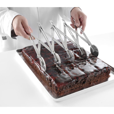 Hendi 515150Állítható tortacímke 13 és 125 mm közötti távolsággal márka Hendi Ez a tartozék professzionális édességek és pékség számára készült. A marker megkönnyíti a sütemények, sütemények és hasonlók vágóvonalának pontos vágását vagy meghatározását. A design rozsdamentes acélból készült, és hét egyoldalú pengével volt felszerelve.