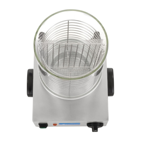 RCHW 800 Hot dog fűtés kerek, üveghengerrel, amely eltávolítható és mosható mosogatógépben. A praktikus és ellenőrzött eszköz, amely hatékonyan bemelegíti a fűtött kolbászokat.