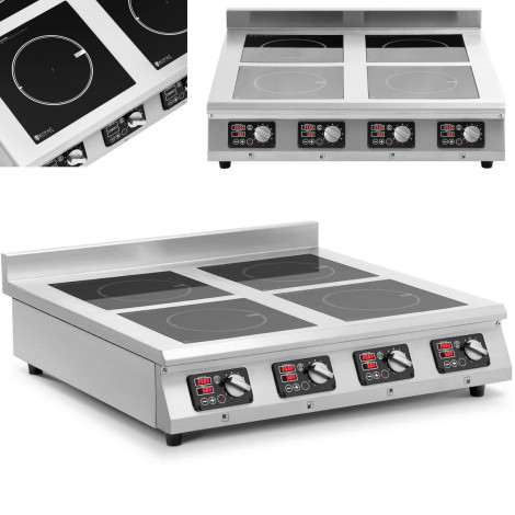 10012578Indukciós tűzhely Royal Catering Lehetővé teszi, hogy gyorsan, energiatakarékos és biztonságosan főzzön. A vezetőképes tekercs változó mágneses mezőt hoz létre, amely azonnal melegíti az edényeket és a serpenyőket, az album hideg marad. Négy főzőfelület a kristályüvegből