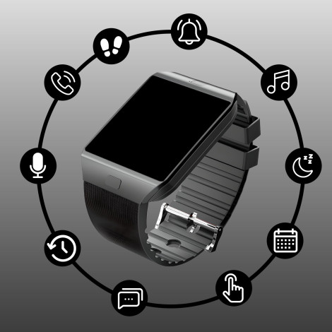 Lehetővé teszi a hívások kezdeményezését és SMS-üzenetek küldését Közvetlenül a csuklóból, a SIM-kártya szolgáltatásnak köszönhetően. Ezenkívül memóriakártya-olvasóval, beépített kamerával, valamint számos hasznos funkcióval rendelkezik, például pedométer, zenelejátszó, ébresztőóra, naptár vagy riasztás, mielőtt elveszti a telefont.