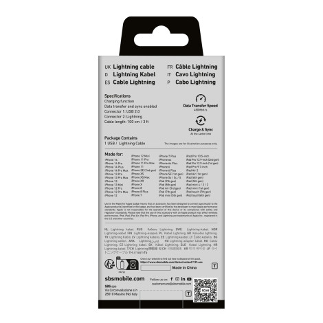 Egyidejű terhelés és adatátvitelKábel SBS A TecableUSBIP589K lehetővé teszi egyidejű töltés és adatátvitel, amely ideális az intenzív használathoz. Fényképek, videók és dokumentumok küldése anélkül, hogy elvesztenék az értékes időt a külön folyamatokhoz.