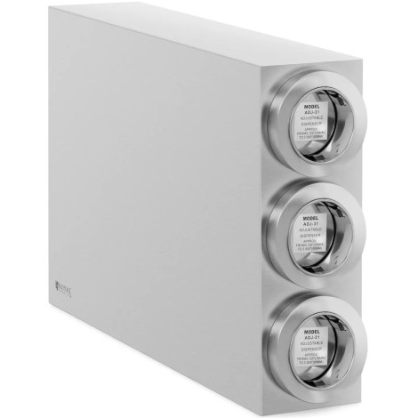 acciaio inossidabile, che fornisce non solo una lunga durata, ma anche un aspetto eccellente e attraente per molto tempo. L'alimentatore brucia in vari dintorni e darà stazioni con carattere esclusivo e moderno. Fornisce anche l'ordine ed efficienza nei luoghi in cui non c'è molto spazio. Grazie alla struttura verticale, il modello richiede una piccola superficie, che consente di utilizzare in modo ottimale la stazione del caffè.