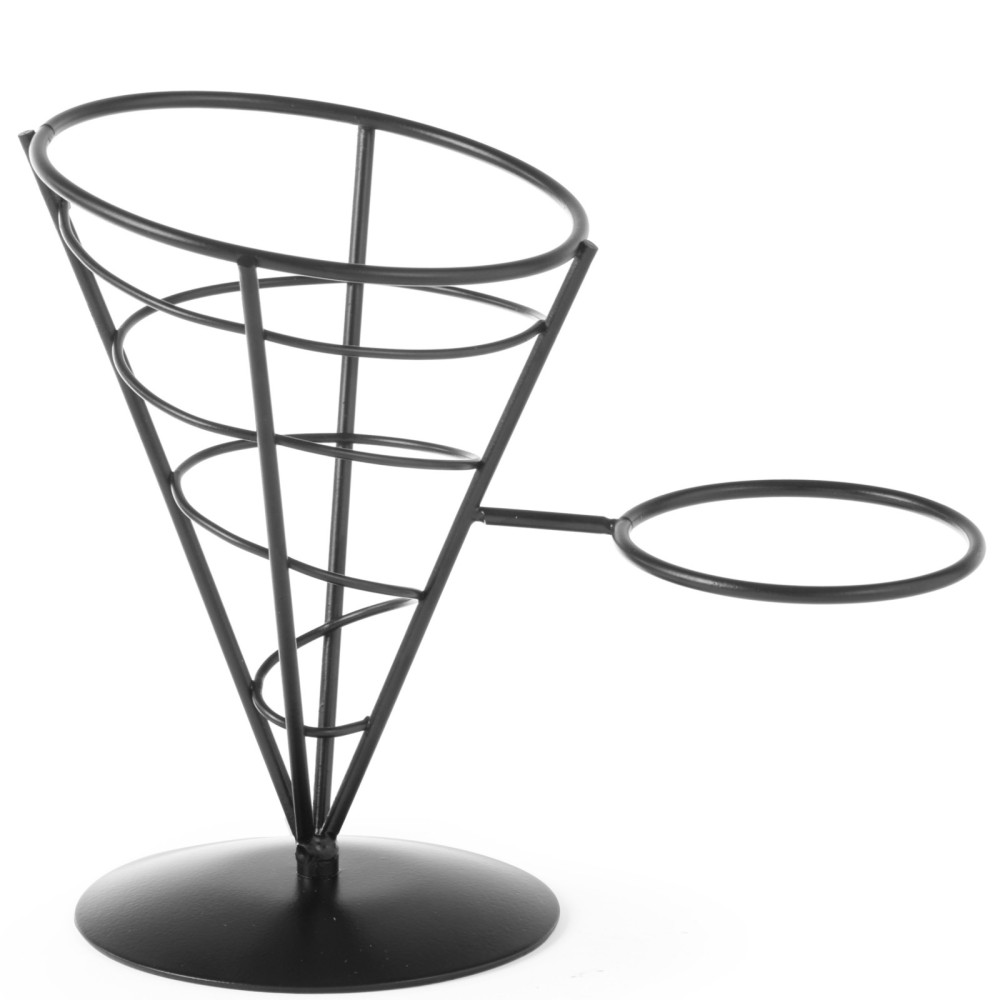Numero del produttore: 630914 Un supporto pratico e conveniente per servire, ad esempio, borse con patatine fritte. Alta qualità. Per l'uso in ogni cucina. Caratteristiche del prodotto: - Design del colore nero con una maniglia su una ciotola per salse - Adatto a una ciotola per 80 ml di salse (561713) che dovrebbero essere ordinate separatamente Parametri: - Dimensioni: 210x110x (h) 172mm Incluso: - Stand per servire patatine fritte
