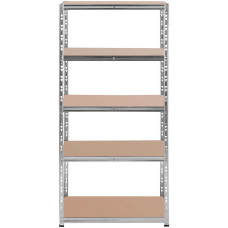 5 ripiani senza soluzione di continuità con altezza regolabile Ti permette di posizionare una varietà di cose. Ogni scaffale ha una capacità di carico di 175 kg. I post sono stati realizzati in acciaio zincato, sono resistenti alla ruggine e richiedono poca manutenzione.
