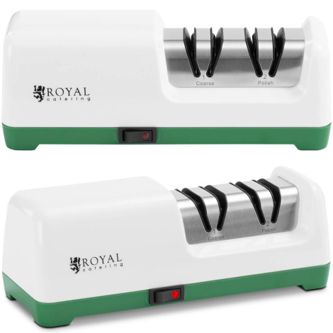 Codice del produttore: 10012954 Affilacoltelli elettrici per coltelli da marca Royal Catering Lavorerà nella cucina professionale e domestica. Sparatura professionale con un motore 20 w Ripristinare l'efficienza del coltello da taglio in 2 tappe: Iniziale grossolana e lucidatura. Il dispositivo è facile da usare e il fondo in gomma del temperatura lo tiene in sicurezza sul bancone. Un alloggiamento in acciaio inossidabile solido è facile da mantenere pulito e il magnesio attaccato al fondo che afferra efficacemente piccole talee. Caratteristiche del prodotto: