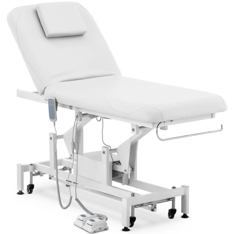 Può essere regolato individualmente fino a 680-900 mm. Inoltre, lo schienale è incollato a 60Deg. Questo troverà la migliore impostazione per clienti e dipendenti. La posizione seduta o sdraiata è facoltativamente regolabile in base al tipo di procedura. Il poggiatesta ha un cuscino rimovibile. Grazie alla tappezzeria di riempimento di schiuma di diverso spessore (sedile: 100 / schienale: 80 / cuscino: 40 mm) e la piacevole copertura della pelle sintetica offerta del letto di massaggio è estremamente conveniente e garantisce un comfort elevato in tutto il trattamento.