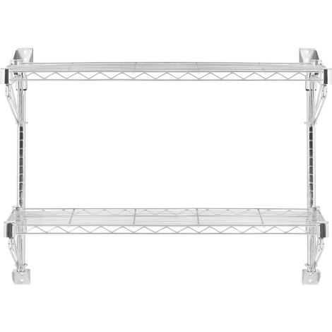 Due ripiani lunghi da 90 cm e 35 cm di profonditàla cui altezza può essere regolata ogni 2,54 cm. È possibile collegare i ganci a conti o padelle allo scaffale.