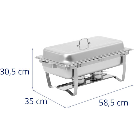 10013327Grandi marchi per i piatti del marchio Royal Catering Lavoreranno perfettamente nei buffet o durante gli eventi con il catering. Mantengono cibo e appetitosi vari piatti. Puoi anche riempire il fondo dei cubetti di ghiaccio per raffreddare piatti freddi. Grazie ai telai pieghevoli, puoi facilmente muoverti e conservare il Bemario senza prendere molto spazio. I riscaldatori non hanno bisogno di elettricità.