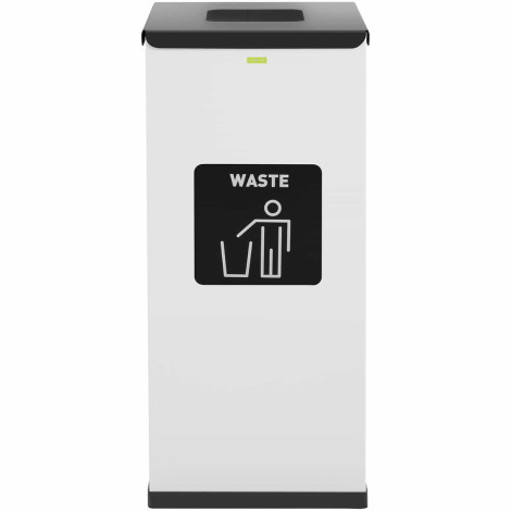 4.6 kg. Grazie a questo, puoi facilmente trasportarlo, vuoto e impostare ovunque. Gomma, base antiscivolo garantisce la stabilità. Realizzato in acciaio verniciato cestello è caratterizzato da durata ed è molto facile da curare. A causa del materiale utilizzato e il colore bianco ha un aspetto moderno, che rende il cestino adatto per l'uso nello spazio pubblico, aziende, ristoranti e appartamenti privati. Sulla parte anteriore del cestino c'è etichetta ecologica e l'iscrizione identifica chiaramente lo scopo (rifiuti misti), e quindi la segregazione dei rifiuti.