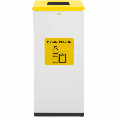 4.6 kg. Dzięki temu możesz go łatwo transportować, opróżniać i ustawiać w dowolnym miejscu. Gumowa, antypoślizgowa podstawa gwarantuje mu stabilność. Wykonany został z malowanej stali, odznacza się trwałością i jest bardzo łatwy w pielęgnacji. Z przodu kosza znajdują się ekologiczna etykieta i napis wyraźnie identyfikujące przeznaczenie (tworzywa sztuczne i metale), a przez to segregację odpadów.