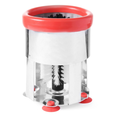 Numer producenta: 552681 Profesjonalny zmywak do szklanek i pokali marki HENDI cechuje: – Obudowa wykonana z aluminium – Szczotka wykonana z nylonu – Dno wyposażone w 4 nogi-przyssawki Parametry: – średnica: 150 mm – wysokość: 190 mm W zestawie: – zmywak do szklanek