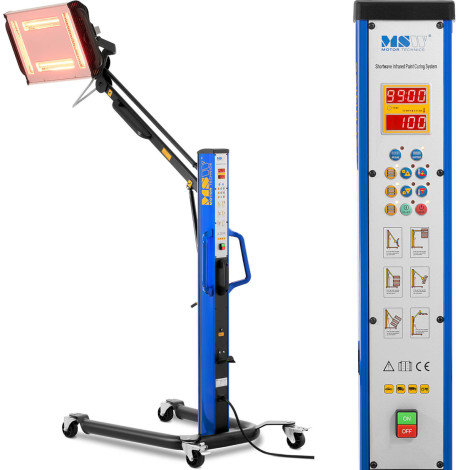 4 x 1000 W. Urządzenie suszy farby i lakiery skuteczniej niż konwencjonalne sprzęty, ponieważ promieniowanie wnika do wnętrza i pozbawia je wilgoci od środka. Zapobiega tym samym tworzeniu się pęcherzy oraz przyspiesza proces. Promienie podczerwone nie wydzielają ciepła do otaczającego powietrza a przenoszą je bezpośrednio na powierzchnię roboczą. Hydrauliczne ramię przesuwa się w pionie i poziomie na wysokość do maks.