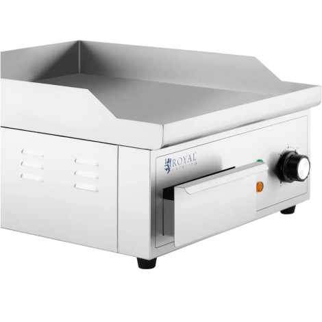 10012028Płyta grillowa marki Royal Catering pozwala przyrządzać soczyste steki, hamburgery, ryby, omlety, tortille czy warzywa. Elektryczna płyta grillowa imponuje niskim wydzielaniem dymu oraz higienicznym i bardzo czystym sposobem pracy. Sprzęt doskonale nadaje się do zastosowania w dużych kuchniach - od restauracji i barów z przekąskami po food trucki czy imprezy z cateringiem. W pełni automatyczny termostat zapewnia utrzymanie stałej temperatury. Dzięki wydajnemu elementowi grzewczemu o