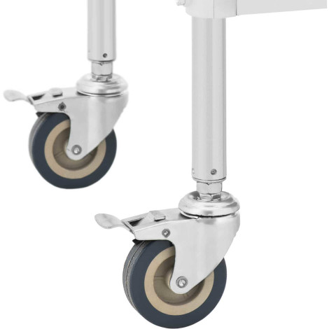Wózek laboratoryjny marki Steinberg Systems idealnie nadaje się do użytku w laboratorium, oraz wszędzie tam, gdzie potrzebny jest mobilny i dobrze zorganizowany sprzęt do przechowywania. Wózek posiada dwie półki o wymiarach 74 x 44 x 13 cm z ramką, która zapobiega przypadkowemu zsunięciu rzeczy z jednocześnie jedną stroną otwartą, co ułatwia wyjmowanie i układanie przedmiotów, oraz dwie szuflady o wymiarach 21 x 31 x 8 cm, która oferuje dużo miejsca na mniejsze akcesoria. Zamontowane 4 kółka wykonane z plastiku (PCV) nie zarysują nawet delikatnych podłóg, a dwa niezawodne hamulce postojowe zapewnią stabilność podczas postoju. Dla większego komfortu użytkowania na bocznej rurce znajduje się praktyczna miska na odpadki, którą można obracać o 360deg w zależności od potrzeb. Za sprawą wykonania ze stali nierdzewnej wózek imponuje stabilną konstrukcją o udźwigu do 20 kg, ponadto całość jest niezwykle prosta w pielęgnacji, zapewniając czystość i higienę pracy.