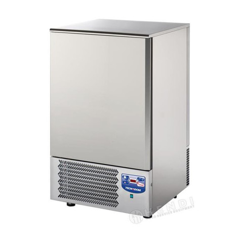 Numer producenta: HENDI 232187 Profesjonalna schładzarka szokowa marki Hendi. Schładzarki szokowe to urządzenia służące do szybkiego schładzania lub zamrażania przygotowanych potraw. Urządzenie rekomendowane jest dla restauracji firm cateringowych czy domów weselnych. Cechy produktu: – urządzenia służące do szybkiego schładzania lub zamrażania przygotowanych potraw – obudowa zewnętrzna oraz komora wewnętrzna w całości z wysokogatunkowej stali nierdzewnej – komora wewnętrzna z zaokrąglonymi narożnikami ułatwiającymi czyszczenie – komora z prowadnicami na GN 1/1 i blachy piekarnicze 600x400mm – izolacja o grubości 60mm z poliuretanu, wtryskiwana pod wysokim ciśnieniem, co gwarantuje wysoki współczynnik izolacji termicznej – górna pokrywa zdejmowana – automatycznie domykające się drzwi z uszczelką magnetyczną – elektroniczny panel sterowania i kontroli danych – sonda w zestawie – system schładzania/zamrażania wymuszony wentylatorem – bezproblemowa praca w temperaturze otoczenia do +43C i wilgotności względnej powietrza do 65% – środek chłodniczy: R404A/R507 – możliwość schładzania od +70C do +3C (90 minut) od +70C do -18C (240 min.) lub w określonym czasie bez podania końcowej temperatury – regulowane nóżki ze stali nierdzewnej – pojemność komory: 10x GN 1/1 lub 10 blach 600x400 mm – wymiary wew. komory: 610x410x760 mm – 10 par prowadnic z odstępem co 70 mm – wydajność przy schładzaniu do +3C: 25 kg – wydajność przy zamrażaniu do -18C: 20 kg Parametry: – wymiary w mm: 750x740x(H)1260 – waga w kg: 90 – pojemność komory: 10 x GN 1/1 lub 10 blach 600x400mm – moc (w): 1490 – napięcie (V): 230