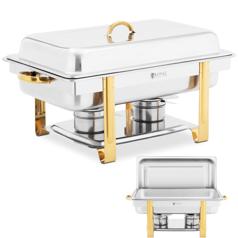 10013029Podgrzewacz do potraw marki Royal Catering przyda się w hotelu, restauracji czy podczas imprezy z cateringiem do utrzymywania w cieple potraw. Wykonany został ze stali nierdzewnej neutralnej dla żywności. Elegancki wygląd i odpowiedni rozmiar przyciągają wzrok i wzbudzają zainteresowanie gości pyszną zawartością. Za sprawą