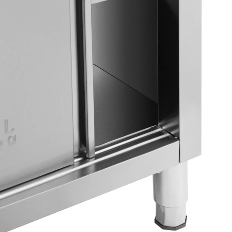 wzmocnioną płytą MDF oraz szafki do przechowywania zapewnia szerokie zastosowanie i łatwość w utrzymaniu porządku w kuchni. Wnętrze przedzielone jest solidną półką. Całkowite obciążenie stołu gastronomicznego wynosi