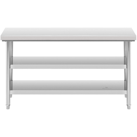 Kod producenta: 10011653 Stół roboczy marki Royal Catering jest przeznaczony do profesjonalnych kuchni. Sprawdzi się w kuchniach hoteli, restauracji, stołówek, w kantynach, pizzeriach oraz piekarniach a także w sklepach mięsnych i rybnych, szkołach, czy szpitalach. Wykonany został ze stali nierdzewnej, odpornej na rdzę, uszkodzenia mechaniczne oraz matowienie. Duży blat o wymiarze 150 x 60 cm oraz dodatkowe półki zapewniają wystarczającą ilość miejsca do pracy i przechowywania przyborów kuchennych. Nośność blatu wynosi 200 kg a półek po 200 kg, łącznie 600 kg. Nóżki są regulowane, co czyni stół bardziej stabilnym nawet na nierównym podłożu. Cechy produktu: