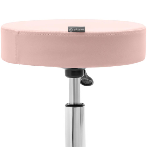 Taboret kosmetyczny marki PHYSA idealnie sprawdzi się w salonie fryzjerskim, kosmetycznym czy gabinecie lekarskim. Taborek wyposażony jest w 5 lekkobieżnych kółek, dzięki którym z łatwością go przetransportujesz, a wysokość ustawisz w zakresie 540 - 720 mm za pomocą sprężyny gazowej. Stołek obraca się o 360deg  wokół własnej osi, a tapicerowane siedzisko o średnicy 350 mm utrzyma ciężar do 150 kg za sprawą solidnej konstrukcji. Zastosowane materiały, takie jak syntetyczna skóra PVC odporna na kurz i wodę oraz stop aluminium są łatwe w utrzymaniu czystości.