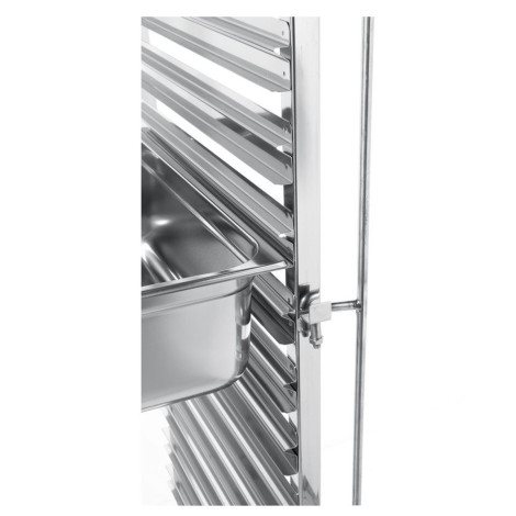 Numer producenta: HENDI 810576 Wózek do transportu pojemników HENDI 810576 doskonale sprawdzi się w dużej i małej gastronomii, w firmach cateringowych, szkołach oraz szpitalach. Wózek transportowy jest dostosowany do przewożenia pojemników GN 1/1. Posiada 30 stanowisk na pojemniki. Wózek wyposażony jest w obustronne zabezpieczenie przed wypadnięciem pojemników. Wózek Hendi 810576 jest przeznaczony do samodzielnego montażu. Cechy produktu: