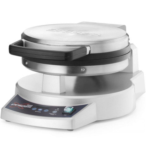 Kod producenta: WSC300CE Naleśnikarka XPresstrade firmy Waring to wielofunkcyjne urządzenie do naleśników, pancakes, tortilli, quesadilli, omletów, chipsów serowych lub bekonu. Powierzchnia grzewcza została wykonana z aluminium pokrytego trójwarstwową nieprzywierającą powłoką Whitford QuanTaniumreg - jest idealnie gładka, o średnicy 350 mm. Dwustronne grzanie równomiernie opieka produkt z obu stron. Nie ma konieczności przewracania produktu, a jego czas przygotowania zmniejsza się o połowę. Silikonowa szpatuła znajdująca się w zestawie ułatwia zdejmowanie naleśników bez rysowania powierzchni grzewczej. Po ponownym uruchomieniu zapamiętane są poprzednie ustawienia czasu i temperatury. Patelnia posiada elektroniczny panel dotykowy z cyfrowym wyświetlaczem temperatury i czasu. Cechy produktu: