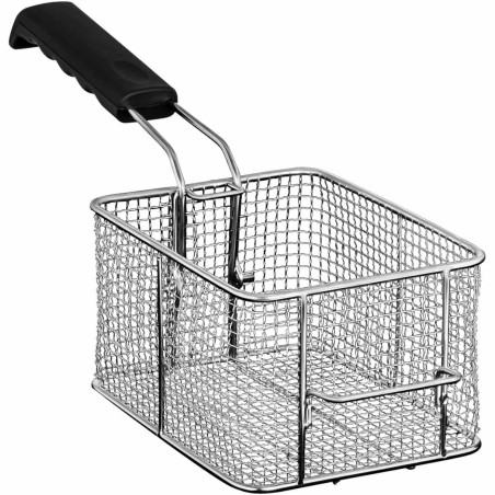 Voor 8-liter friteurs Hetzelfde merk en apparaten van andere merken met geschikte parameters. Het is gemaakt van hoogwaardig roestvrij staal. Het handvat is gemaakt van hoog plastic temperatuurbestendig. De mand heeft een handvat waarmee het op een friteuse kan worden gemonteerd om het overmaat aan olie te verwijderen. Afmetingen van de mand zonder handvatten