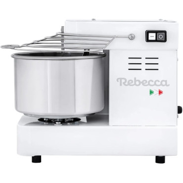 Miesiarka spiralna Rebecca marki Prismafood sprawdzi się w małych lokalach takich jak pizzeria, piekarnia czy cukiernia. Wyposażona została w stałą głowicę i dzieżę. Pozwala wydajnie wymieszać ciężkie ciasto do 25 kg/h. Spiralny kształt mieszadła zapewnia perfekcyjnie jednorodne ciasto. Masywna i wytrzymała obudowa urządzenia została wykonana ze stali nierdzewnej AISI 304. Podnoszona kratowana osłona bezpieczeństwa ułatwia dodawanie składników podczas pracy. Mikrowyłącznik zatrzymuje pracę urządzenia przy otwarciu osłony bezpieczeństwa. Napęd pasowy zapewnia wydajną pracę sprzętu. Nóżki zapobiegają ślizganiu się urządzenia po blacie. Wymiar dzieży wynosi śr. 240 x (H) 165 mm.