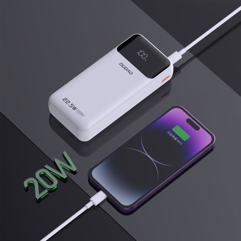 Powerbank Dudao K15Pro dzięki pojemności 20000 mAh zapewni Ci wiele cykli ładowania. Wbudowane kable Lightning i USB-C sprawią, że zapomnisz o problemach z zabieraniem gadżetów ze sobą. Powerbank obsługuje szybkie ładowanie PD 22.5W, co oznacza, że Twoje urządzenia będą gotowe do użycia w mgnieniu oka. Dodatkowo dzięki wyświetlaczowi LED będziesz wiedzieć, ile energii Ci jeszcze pozostało.