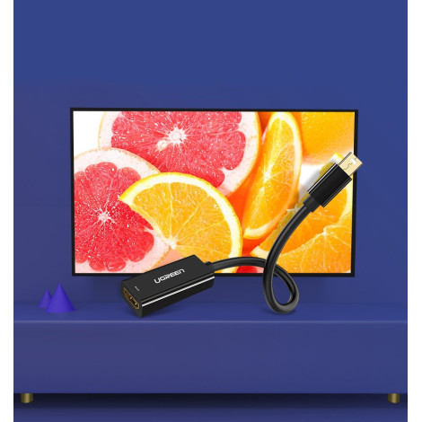Adapter marki Ugreen, pozwala na podłączenie do urządzeń wyposażonych w port Mini DisplayPort ekranów ze złączem HDMI. Dzięki niemu będziesz cieszyć się stabilnie wyświetlanym obrazem o rozdzielczości do 1080p 60 Hz. Zapewnia doskonałą synchronizację dźwięku i obrazu. Dzięki pozłacanym wtyczkom kabel jest odporny na korozję, a mocna obudowa chroni go przed uszkodzeniem nawet przy intensywnym używaniu.