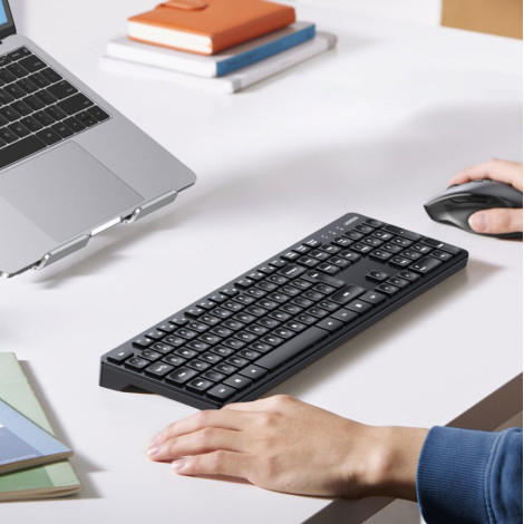 Zestaw bezprzewodowej klawiatury i myszy marki Ugreen zaspokoi Twoje potrzeby zarówno podczas pracy, zabawy jak i w czasie gier wideo. Stabilne i bezprzewodowe połączenie 2,4 GHz zapewni Ci swobodę ruchów i pozwoli uniknąć zakłóceń sygnału. Pełnowymiarowa klawiatura ułatwi Ci korzystanie z komputera, umożliwiając obsługę głośności, odtwarzania multimediów i przełączanie utworów. To doskonałe rozwiązanie dla osób, które potrzebują szybkiego dostępu do różnych funkcji. Klawiatura posiada optymalnie ustawiony kąt nachylenia, co zapewnia ergonomiczną pozycję dla dłoni i nadgarstków podczas pisania. Lekka i precyzyjna myszka, wyposażona w czujnik 4000 DPI zapewnia pełną swobodę ruchów i dokładną kontrolę. Myszka jest zasilana jedną baterią AAA. Ten zestaw to praktyczne rozwiązanie dzięki wtyczce USB typu Plug-and-play, która łączy zarówno klawiaturę, jak i myszkę. Nie musisz instalować żadnych sterowników, co oznacza, że możesz zacząć korzystać z zestawu od razu po podłączeniu.
