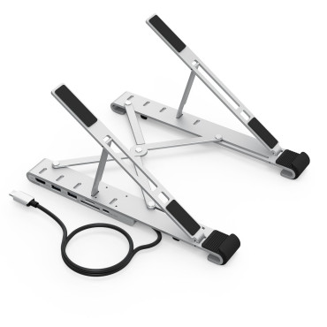 Choetech to rewelacyjny i ergonomiczny, składany stojak na laptopa typu Hub-Stand. Jest wyposażony w szereg różnych portów, co znacznie zwiększa produktywność w czasie pracy. Sama podkładka jest ultralekka, designerska, stabilna. Wyregulujesz ją zgodnie ze swoimi preferencjami, ustawiając idealny kąt patrzenia na jednym z pięciu poziomów. Korzystasz z gadżetu wygodnie jak chcesz i gdzie chcesz -przy biurku, w łóżku i w podróży!