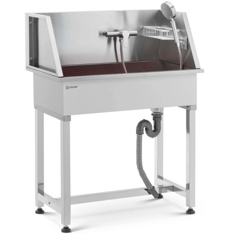 Wanna groomerska marki PHYSA idealnie nadaje się do wszystkich salonów czy gabinetów zajmujących się pielęgnacją lub opieką zwierząt o masie do 60 kg. Kompletny zestaw zawiera węże przyłączowe i odpływowe (GL/2 / 60 cm każdy), baterię z zaworem ceramicznym, którym można ustawić temperaturę wody w zakresie od 0 do 90 deg C, słuchawkę prysznicową o szerokości 10 cm i długości 24 cm z 3 poziomami ciśnienia z elastycznym wężem długości 1,7 m oraz stojak na szampon o wymiarach 24,5 x 11,5 x 5,5 cm, Antypoślizgowe gumowe nóżki zapewniają stabilność przez cały czas pracy w myjce, dodatkowo chroniąc podłogę przed zarysowaniami. Całkowicie spawana, jednoczęściowa wanna wykonana ze stali nierdzewnej ma gładkie powierzchnie, które są łatwe do czyszczenia, zapewniając zawsze profesjonalny wygląd.