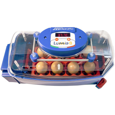 Inkubator do jaj marki Borotto nadaje się do wylęgu jaj kur, bażantów, perliczek, przepiórek, kuropatw, kaczek, gęsi, pawi, gołębi oraz różnych ptaków egzotycznych i drapieżnych. We wnętrzu można inkubować jednocześnie 8 jaj kurzych lub 32 przepiórcze. Termostat oparty o algorytm typu PID zapobiega wahaniom temperatury i dba o jej stały poziom (+/- 1deg C). Parametr jest widoczny na czytelnym wyświetlaczu LED. Konstrukcja z odpornego na ciepło polimeru ABS, doskonale izolującego wnętrze wylęgarki. Dzięki dodatkowi jonów srebra BIOMASTER materiał ogranicza rozwój bakterii, co zapobiega ewentualnym infekcjom zarodków. Statyczny system nawilżania pozwala utrzymać idealny poziom wilgotności. Wynosi on 45-55% z wodą na jednej tacce, 60-65% na dwóch. Uzupełnianie wody odbywa się przy wykorzystaniu dwóch zewnętrznych napełniaczy. Są zabezpieczone zaślepkami typu „Dust Stop#8221 . System obracania jaj korzysta z programowalnego mikroprocesora. Kąt nachylenia jest regularnie zmieniany, stale w inny sposób, tak jak to się dzieje naturalnie w ptasim gnieździe. Inkubator posiada funkcje zasilania napięciem 12 V. W razie przerw w dostawie energii elektrycznej można go podłączyć np. do akumulatora w samochodzie.
