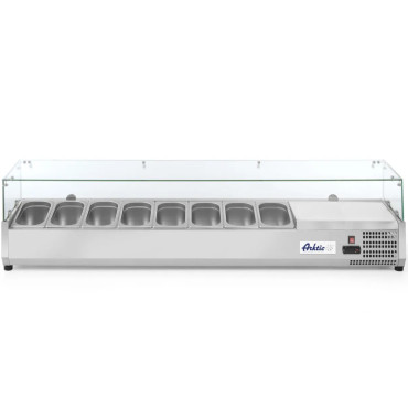 Witryna chłodnicza marki Arktic 232927 przeznaczona została do przechowywania 8 pojemników GN 1/4. Obudowa wewnętrzna i zewnętrzna została wykonana z wysokogatunkowej stali nierdzewnej, natomiast witryna ze szkła hartowanego. Nadstawka chłodnicza pracuje z mocą 170W oraz napięciem 230V.