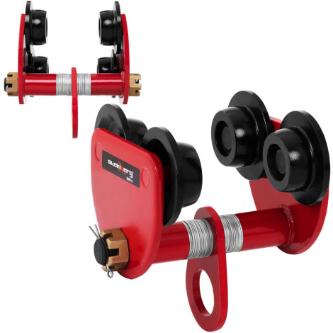 Maksymalny udźwig wózka wynosi 2000 kg a współczynnik bezpieczeństwa 1,25 maks. udźwigu. Regulacja szerokości w zakresie 105-160 mm pozwala zamontować urządzenie na różnych dźwigarach. Wózek został wykonany ze stali, co gwarantuje pracę przez bardzo długi czas. Cztery stalowe kółka umożliwiają szybkie przemieszczanie po suwnicy bramowej a ich podwójny system umożliwia dopasowanie do prostych oraz stożkowych prowadnic.