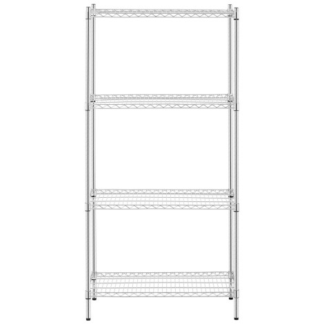 4 półki o rozmiarach 900 x 450 mm a każda z nich jest w stanie wytrzymać obciążenie do 250 kg. Solidne słupki o wysokości 180 cm i średnicy 25 mm zapewniają całości stabilność. Nóżki są regulowane, dzięki czemu można ustawić regał nawet na nierównym podłożu. Konstrukcję wykonano z trwałej i estetycznej
