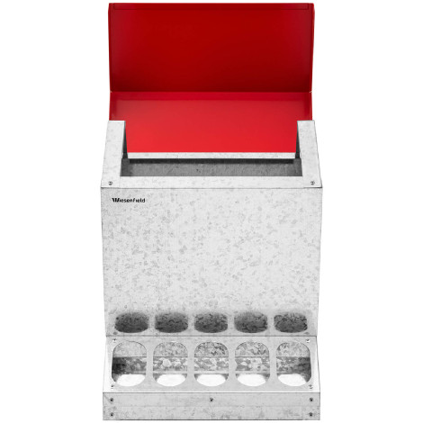 Karmnik dla drobiu marki Wiesenfield sprawdzi się we wszelkiego rodzaju gospodarstwach rolnych i amatorskich hodowlach ptaków. Nadaje się do pasz sypkich (ziarna granulat, śruta).