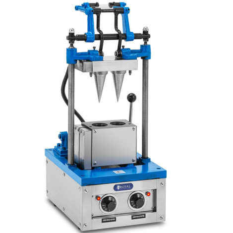 Waflownica marki Royal Catering dzięki swojej mocy 2100 W pozwala wytworzyć 50-60 wafli / godzinę. Urządzenie jest łatwe w obsłudze. Należy ustawić żądana temperaturę dla górnej i dolnej płyty do pieczenia oddzielnie na przejrzystych termostatach. Foremki wypełnić ciastem, następnie docisnąć górną część za pomocą poręcznej dźwigni. W zależności od tego jak chrupiące mają być rożki ich pieczenie zajmuje od 1 do 2 min. Po tym czasie dolne płyty oddziela się dźwignią. Użytkowanie, czyszczenie i konserwacja maszyny do wafli przebiega łatwo i intuicyjnie.