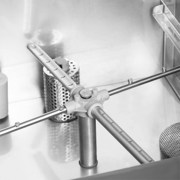 Zmywarka do naczyń marki Royal Catering sprawdzi się w profesjonalnej kuchni. Posiada dużą moc 2900 W, która pozwala umyć w godzinę 30 koszy. Każdy kosz ma pojemność aż 17 l. Maksymalna temperatura 92deg C poradzi sobie z najbardziej uporczywym brudem oraz resztkami jedzenia. Jednocześnie zmywarka wolnostojąca jest niezwykle ekonomiczna przy zużyciu wody wynoszącym tylko 1.5 l na cykl zmywania. Obudowę zmywarko-wyparzarki wykonano z wysokiej jakości stali nierdzewnej. Materiał jest łatwy w pielęgnacji, a dzięki wysokiej odporności na korozję bardzo trwały. Ponadto urządzenie ma klasę ochrony IPX4, prąd wejściowy 12,7 A oraz napięcie robocze 230 V. Podczas pracy sprzęt działa bardzo cicho (73 dB).
