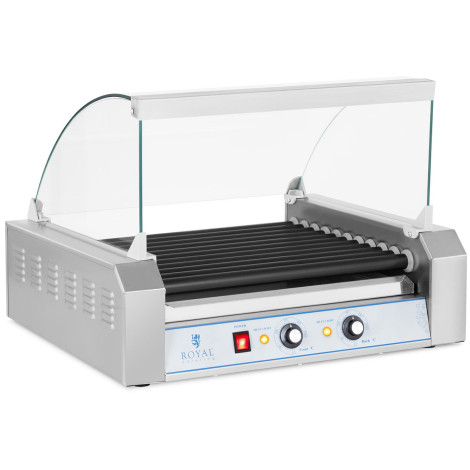 10010472Grill rolkowy przeznaczony jest do szybkiego przygotowania kiełbasek i parówek HOT DOG. Urządzenie dobrze sprawdzi się w profesjonalnych kuchniach, barach, na stacjach paliwowych oraz w mobilnych punktach gastronomicznych. Moc urządzenia wynosi 2200 W. Temperaturę reguluje się płynnie do 250deg C. Rolki grzewcze (11 szt.) wykonane zostały ze stali pokrytej