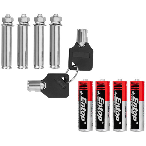 • - Akcesoria - dwa klucze i cztery baterie dołączone do zestawu,
