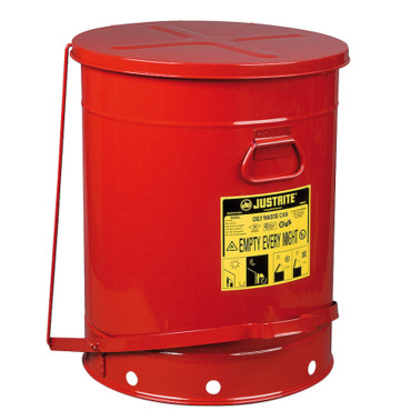 Numer producenta: 4788 Numer modelu: JUSTRITE 09700 Kosz na odpady łatwopalne, zaolejone czyściwo - Specjalnie zaprojektowany kosz do zbiórki zaolejonych szmat,ścierek,rękawic,itp. - Samozamykająca pokrywa jest wyposażona w pedał. - Pojemnik posiada uchwyt dla łatwiejszej manipulacji. - Kosz wykonany jest z ocynkowanej stali. - Podwyższone dno umożliwia cyrkulację powietrza pod nim, co redukuje temperaturę wewnątrz pojemnika. - Samozamykająca pokrywa uniemożliwia dostęp powietrza - czym ogranicza ryzyko rozszerzania się ewentualnego płomienia. - Pojemniki są testowane wg norm FM,UL. - Podwyższona gwarancja do 10 lat. Parametry: gł.wymiary ø 467x595mm pojemność 79l waga 10kg certyfikat FM, UL zgodne z OSHA W zestawie: - Kosz na odpady łatwopalne, zaolejone czyściwo JUSTRITE 09700