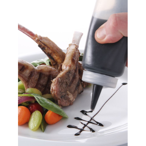Numer producenta: HENDI 557914 Profesjonalny dyspenser Hendi - czerwony pojemnik 700 ml do sosów zimnych. Rekomendowany dla małej i dużej gastronomii, można go również używać w warunkach domowych. Głównymi zaletami pojemnika jest staranne wykonanie z polietylenu, który należą do miękkich i elastycznych tworzyw, co umożliwia nam na wygodne i szybkie mycie w zmywarkach. Specjalna zatyczka umożliwia zachowanie czystości oraz dzięki specjalnej zatyczce sos dłużej zachowuje świeżość. Cechy produktu: