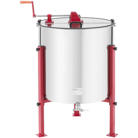 Miodarka marki Wiesenfield sprawdzi się idealnie do produkcji miodu na małą lub prywatną skalę. Miodarka umożliwia łatwe spływanie miodu, a także wyciąganie większych plastrów. Dzięki pojemności 8 ramek o maksymalnym rozmiarze 500 x 245 mm można przetworzyć zbiory w zaledwie kilku cyklach wirowania. Duża średnica zbiornika 68 cm wytwarza wystarczającą siłę odśrodkową do wydajnego wydobywania miodu z plastra. Miodarka jest obsługiwana ręcznie za pomocą żelaznej korby. Za jej pomocą reguluje się prędkość ekstraktora do miodu. Korpus wirówki do miodu i kosz o strukturze plastra miodu wykonano z wysokiej jakości stali nierdzewnej. Dlatego spełnia wymagania higienicznej produkcji miodu. Materiał jest również wyjątkowo trwały i łatwy do czyszczenia po użyciu. Miodarka ze stali nierdzewnej stoi na trzech solidnych żelaznych nogach, co ułatwia napełnianie. Kurek spustowy umożliwia czyste i całkowite opróżnienie wirówki.