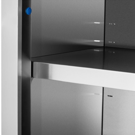 Szafka ścienna marki Royal Catering sprawdzi się w profesjonalnym użytku gastronomicznym. Wymiar szafki wynosi 140 x 45 x 60 cm a jej nośność 60 kg. Wewnątrz znajduje się półka umożliwiająca podział wnętrza. Mebel wykonany został z wysokiej jakości stali nierdzewnej, jest odporny na korozję, trwały i nie wchodzi w reakcję z żywnością. Gładkie powierzchnie są łatwe w czyszczeniu i dezynfekcji. Przesuwne drzwi chronią przedmioty przed światłem i kurzem.