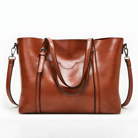 1029556Pojemna damska torebka miejska wykonana z ekologicznej skóry w kolorze brązowym to stylowy i funkcjonalny dodatek na co dzień. Jej nowoczesny design łączy elegancję z praktycznością, oferując dużą przestrzeń do przechowywania oraz wygodę użytkowania.