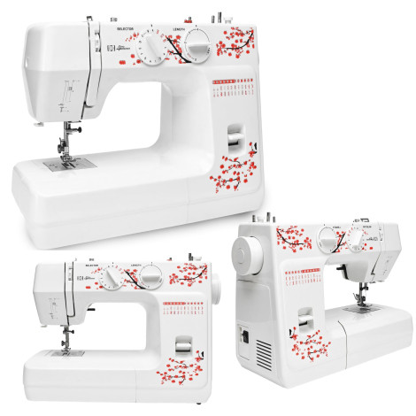 4-stopniową regulację długości ściegu, regulację szerokości ściegu oraz wolne ramię, zapewnia szerokie możliwości krawieckie. Posiada wahadłowy chwytacz, funkcję szycia wstecz, wbudowane oświetlenie oraz łatwy system nawlekania igły. Estetyczny, kwiecisty motyw nadaje jej wyjątkowego wyglądu, a