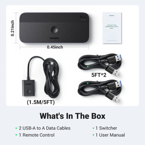Przełącznik USB 3.0 UGREEN CM662 to niezawodne urządzenie, które umożliwia łatwą i szybką wymianę danych między dwoma komputerami, jednocześnie zachowując wysoką wydajność i kompatybilność z różnorodnymi urządzeniami. Szybki transfer danych do 5 Gb/s umożliwia błyskawiczne kopiowanie i udostępnianie plików. Łatwość obsługi dzięki przyciskowi na obudowie oraz pilotowi zdalnego sterowania czyni zarządzanie połączeniami prostym i intuicyjnym. Dzięki szerokiej kompatybilności z systemami operacyjnymi oraz funkcji Plug Play urządzenie jest gotowe do użycia od razu po podłączeniu, bez potrzeby instalacji dodatkowych sterowników.