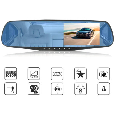 Wideorejestrator kamera samochodowa z detekcją ruchu LUSTERKO Full HD TF 12 V