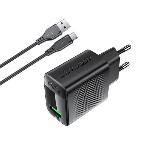 Ładowarka sieciowa A90 GaN USB-A QC 18W + kabel USB-C - czarna